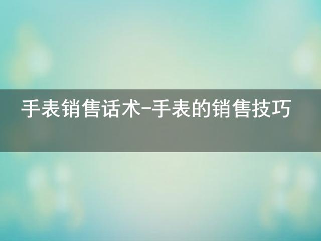在生活中,很多人都不知道手表銷售話術(shù)-手表的銷售技巧是什么意思,其實(shí)他的意思是非常簡單的,下面就是小編搜索到的手表銷售話術(shù)-手表的銷售技巧相關(guān)的一些知識(shí),我們一起來學(xué)習(xí)下吧!