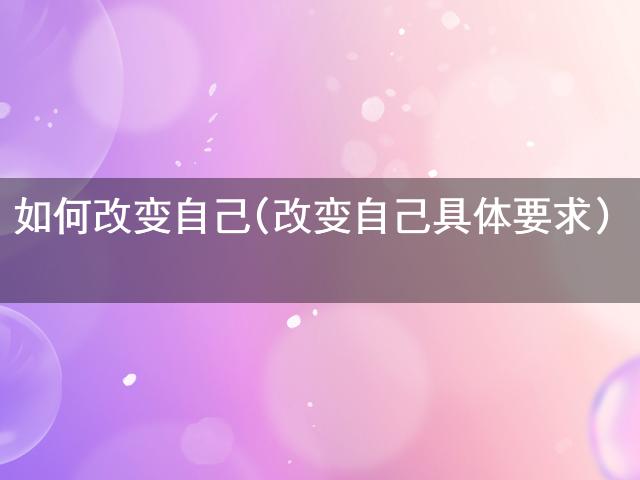 最近小編看到大家都在討論如何改變自己(改變自己具體要求)相關(guān)的事情,對此呢小編也是非常的感應(yīng)興趣,那么這件事究竟是怎么發(fā)生的呢?具體又是怎么回事呢?下面就是小編搜索到的關(guān)于如何改變自己(改變自己具體要求)事件的相關(guān)信息,我們一起來看一下吧!