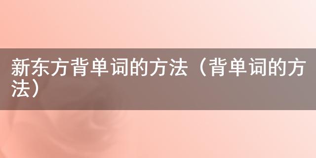 在生活中,很多人都不知道新東方背單詞的方法是什么意思,其實(shí)他的意思是非常簡(jiǎn)單的,下面就是小編搜索到的新東方背單詞的方法相關(guān)的一些知識(shí),我們一起來(lái)學(xué)習(xí)下吧!