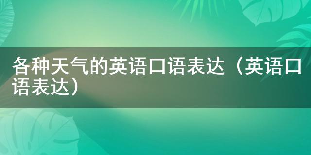 哈嘍小伙伴們 ,今天給大家科普一個小知識。在日常生活中我們或多或少的都會接觸到各種天氣的英語口語表達(英語口語表達)方面的一些說法,有的小伙伴還不是很了解,今天就給大家詳細的介紹一下關于各種天氣的英語口語表達(英語口語表達)的相關內容。