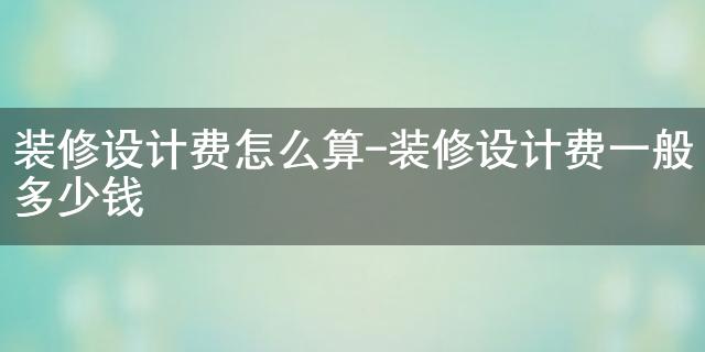 以上是整理的裝修設計費怎么算-裝修設計費一般多少錢全部內容。