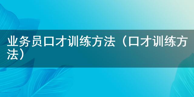 最近這段時(shí)間總有小伙伴問(wèn)小編業(yè)務(wù)員口才訓(xùn)練方法是什么,小編為此在網(wǎng)上搜尋了一些有關(guān)于業(yè)務(wù)員口才訓(xùn)練方法的知識(shí)送給大家,希望能解答各位小伙伴的疑惑。