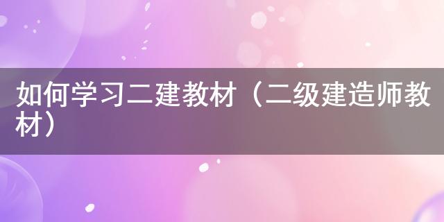 最近這段時間總有小伙伴問小編如何學(xué)習(xí)二建教材(二級建造師教材)是什么,小編為此在網(wǎng)上搜尋了一些有關(guān)于如何學(xué)習(xí)二建教材(二級建造師教材)的知識送給大家,希望能解答各位小伙伴的疑惑。