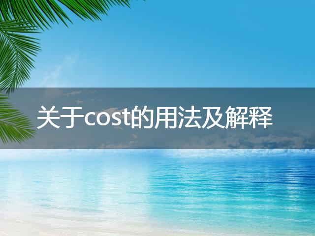 最近這段時(shí)間總有小伙伴問(wèn)小編關(guān)于cost的用法及解釋是什么,小編為此在網(wǎng)上搜尋了一些有關(guān)于關(guān)于cost的用法及解釋的知識(shí)送給大家,希望能解答各位小伙伴的疑惑。