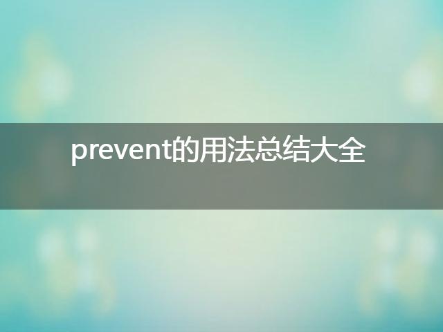 提起prevent的用法總結(jié)大全大家在熟悉不過了,被越來越多的人所熟知,那你知道prevent的用法總結(jié)大全嗎?快來和小編一起去了解一下吧!