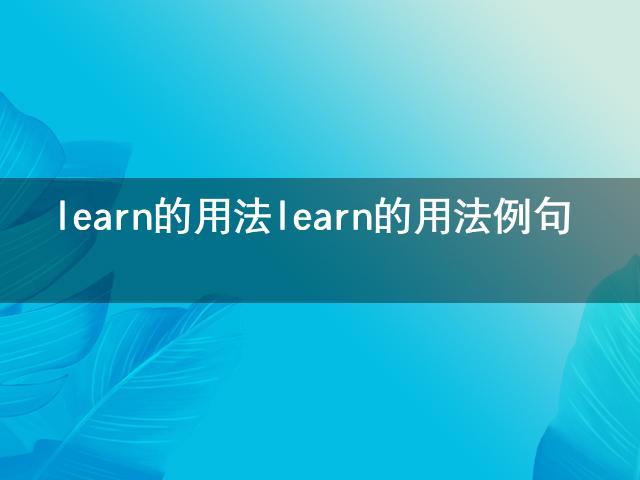 最近小編看到大家都在討論learn的用法 learn的用法例句相關(guān)的事情,對(duì)此呢小編也是非常的感應(yīng)興趣,那么這件事究竟是怎么發(fā)生的呢?具體又是怎么回事呢?下面就是小編搜索到的關(guān)于learn的用法 learn的用法例句事件的相關(guān)信息,我們一起來(lái)看一下吧!