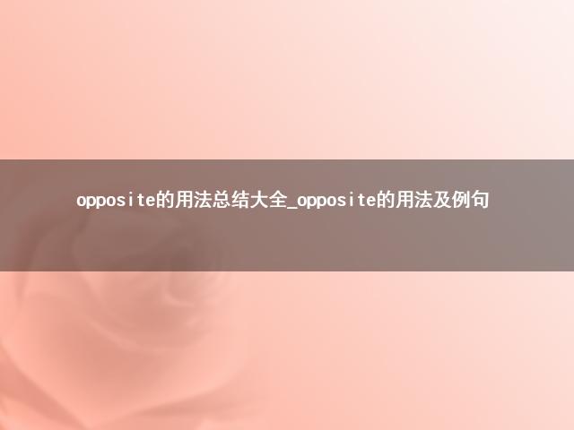 最近這段時間總有小伙伴問小編opposite的用法總結(jié)大全_opposite的用法及例句是什么,小編為此在網(wǎng)上搜尋了一些有關(guān)于opposite的用法總結(jié)大全_opposite的用法及例句的知識送給大家,希望能解答各位小伙伴的疑惑。
