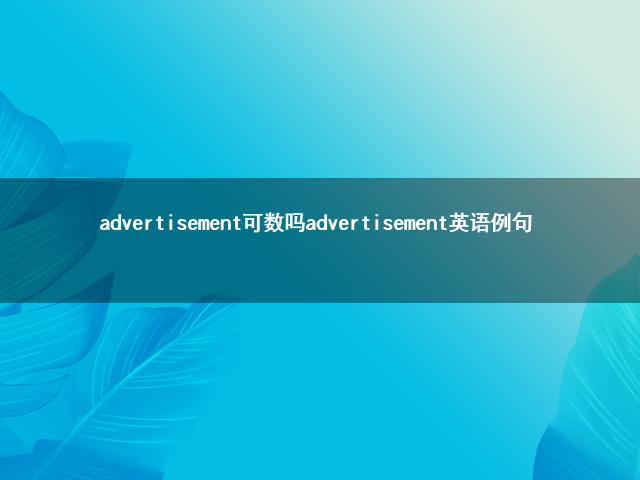哈嘍小伙伴們 ,今天給大家科普一個小知識。在日常生活中我們或多或少的都會接觸到advertisement可數(shù)嗎 advertisement英語例句方面的一些說法,有的小伙伴還不是很了解,今天就給大家詳細(xì)的介紹一下關(guān)于advertisement可數(shù)嗎 advertisement英語例句的相關(guān)內(nèi)容。