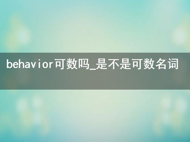 最近小編看到大家都在討論behavior可數(shù)嗎_是不是可數(shù)名詞相關(guān)的事情,對(duì)此呢小編也是非常的感應(yīng)興趣,那么這件事究竟是怎么發(fā)生的呢?具體又是怎么回事呢?下面就是小編搜索到的關(guān)于behavior可數(shù)嗎_是不是可數(shù)名詞事件的相關(guān)信息,我們一起來(lái)看一下吧!