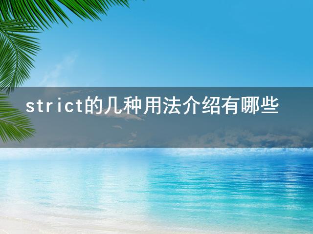 哈嘍小伙伴們 ,今天給大家科普一個(gè)小知識(shí)。在日常生活中我們或多或少的都會(huì)接觸到strict的幾種用法介紹有哪些方面的一些說法,有的小伙伴還不是很了解,今天就給大家詳細(xì)的介紹一下關(guān)于strict的幾種用法介紹有哪些的相關(guān)內(nèi)容。