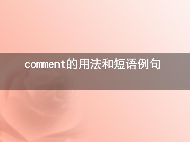 comment的用法5:comment一般用作不及物動(dòng)詞,后面常接介詞on或upon,表示“就(某人〔某事〕)發(fā)表看法,評(píng)論(某人等)”, comment也可用作及物動(dòng)詞,這時(shí)后跟that從句。
