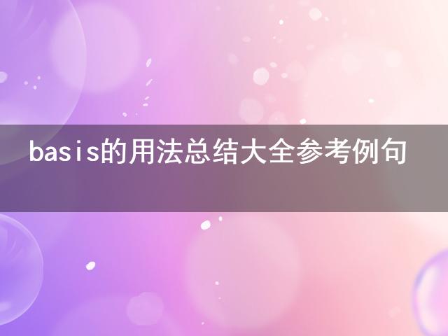 最近小編看到大家都在討論basis的用法總結(jié)大全 參考例句相關(guān)的事情,對此呢小編也是非常的感應(yīng)興趣,那么這件事究竟是怎么發(fā)生的呢?具體又是怎么回事呢?下面就是小編搜索到的關(guān)于basis的用法總結(jié)大全 參考例句事件的相關(guān)信息,我們一起來看一下吧!