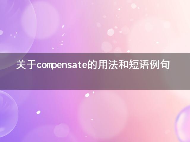 大家應(yīng)該都遇到過(guò)compensate這個(gè)單詞,compensate比較難記的單詞,理解它的意思和用法,有助于我們?nèi)ビ洃浰?。下面是小編給大家?guī)?lái)的關(guān)于compensate的用法和短語(yǔ)例句,以供大家參考,我們一起來(lái)看看吧!