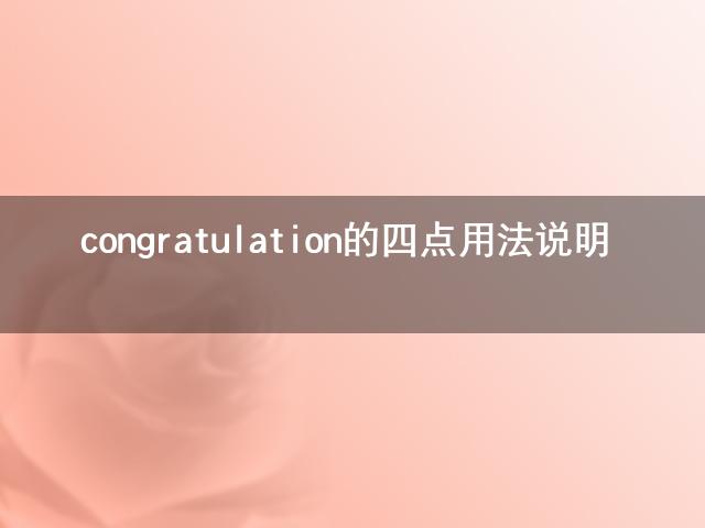 哈嘍小伙伴們 ,今天給大家科普一個(gè)小知識(shí)。在日常生活中我們或多或少的都會(huì)接觸到congratulation的四點(diǎn)用法說(shuō)明方面的一些說(shuō)法,有的小伙伴還不是很了解,今天就給大家詳細(xì)的介紹一下關(guān)于congratulation的四點(diǎn)用法說(shuō)明的相關(guān)內(nèi)容。