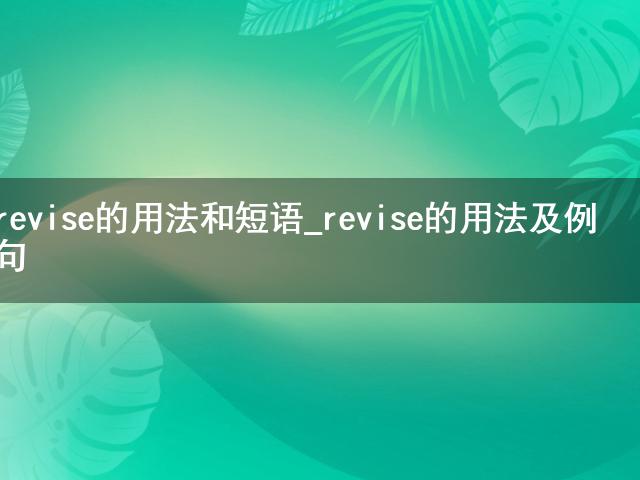 最近小編看到大家都在討論revise的用法和短語_revise的用法及例句相關(guān)的事情,對此呢小編也是非常的感應(yīng)興趣,那么這件事究竟是怎么發(fā)生的呢?具體又是怎么回事呢?下面就是小編搜索到的關(guān)于revise的用法和短語_revise的用法及例句事件的相關(guān)信息,我們一起來看一下吧!