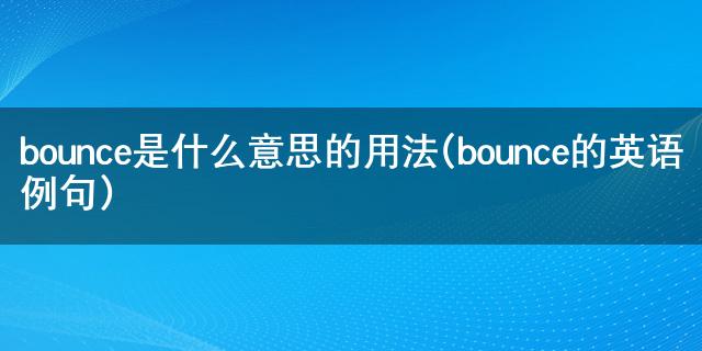 最近小編看到大家都在討論bounce是什么意思的用法(bounce的英語(yǔ)例句)相關(guān)的事情,對(duì)此呢小編也是非常的感應(yīng)興趣,那么這件事究竟是怎么發(fā)生的呢?具體又是怎么回事呢?下面就是小編搜索到的關(guān)于bounce是什么意思的用法(bounce的英語(yǔ)例句)事件的相關(guān)信息,我們一起來(lái)看一下吧!