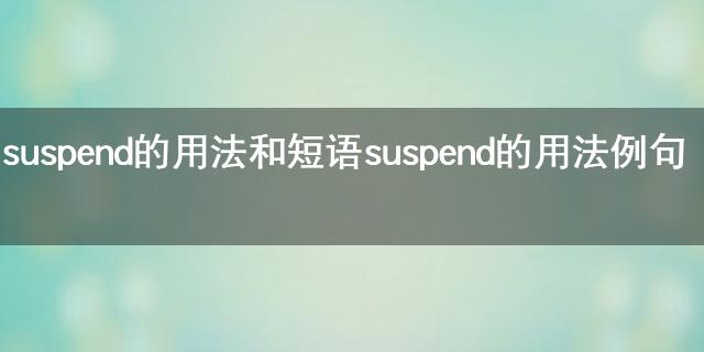 最近這段時(shí)間總有小伙伴問(wèn)小編suspend的用法和短語(yǔ) suspend的用法例句是什么,小編為此在網(wǎng)上搜尋了一些有關(guān)于suspend的用法和短語(yǔ) suspend的用法例句的知識(shí)送給大家,希望能解答各位小伙伴的疑惑。