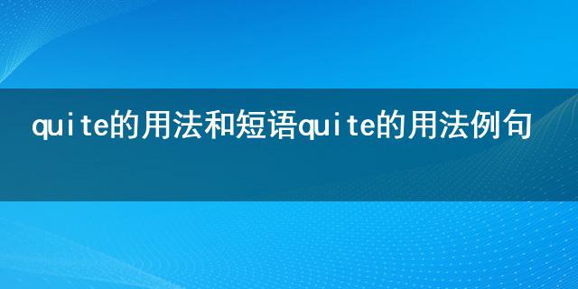 提起quite的用法和短語 quite的用法例句大家在熟悉不過了,被越來越多的人所熟知,那你知道quite的用法和短語 quite的用法例句嗎?快來和小編一起去了解一下吧!