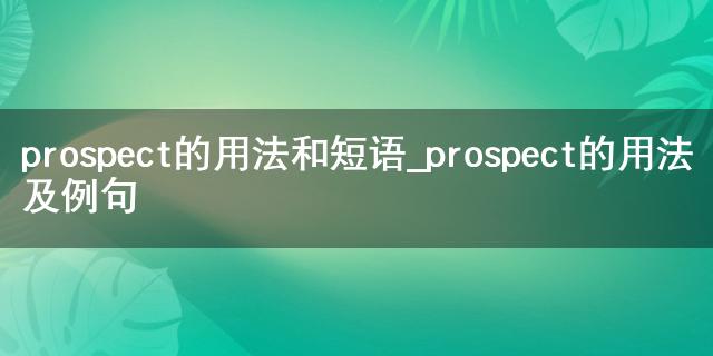 最近小編看到大家都在討論prospect的用法和短語(yǔ)_prospect的用法及例句相關(guān)的事情,對(duì)此呢小編也是非常的感應(yīng)興趣,那么這件事究竟是怎么發(fā)生的呢?具體又是怎么回事呢?下面就是小編搜索到的關(guān)于prospect的用法和短語(yǔ)_prospect的用法及例句事件的相關(guān)信息,我們一起來(lái)看一下吧!