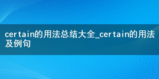 最近小編看到大家都在討論certain的用法總結(jié)大全_certain的用法及例句相關(guān)的事情,對此呢小編也是非常的感應(yīng)興趣,那么這件事究竟是怎么發(fā)生的呢?具體又是怎么回事呢?下面就是小編搜索到的關(guān)于certain的用法總結(jié)大全_certain的用法及例句事件的相關(guān)信息,我們一起來看一下吧!