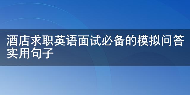 隨著社會(huì)越來(lái)越發(fā)達(dá),大家都選擇在網(wǎng)絡(luò)上汲取相關(guān)知識(shí)內(nèi)容,比如酒店求職英語(yǔ)面試必備的模擬問(wèn)答實(shí)用句子,為了更好的解答大家的問(wèn)題,小編也是翻閱整理了相應(yīng)內(nèi)容,下面就一起來(lái)看一下吧!