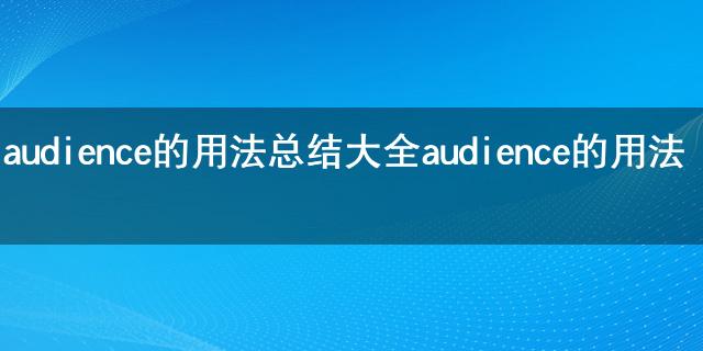 最近小編看到大家都在討論audience的用法總結(jié)大全 audience的用法相關(guān)的事情,對此呢小編也是非常的感應(yīng)興趣,那么這件事究竟是怎么發(fā)生的呢?具體又是怎么回事呢?下面就是小編搜索到的關(guān)于audience的用法總結(jié)大全 audience的用法事件的相關(guān)信息,我們一起來看一下吧!