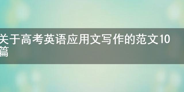 關于關于高考英語應用文寫作的范文10篇的知識大家了解嗎?以下就是小編整理的關于關于高考英語應用文寫作的范文10篇的介紹,希望可以給到大家一些參考,一起來了解下吧!