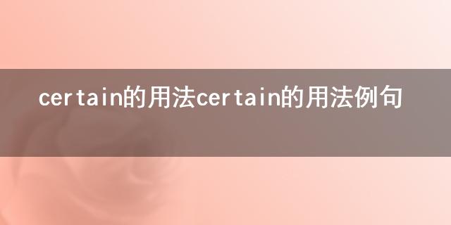 在生活中,很多人都不知道certain的用法 certain的用法例句是什么意思,其實(shí)他的意思是非常簡(jiǎn)單的,下面就是小編搜索到的certain的用法 certain的用法例句相關(guān)的一些知識(shí),我們一起來(lái)學(xué)習(xí)下吧!
