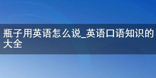 隨著社會(huì)越來越發(fā)達(dá),大家都選擇在網(wǎng)絡(luò)上汲取相關(guān)知識(shí)內(nèi)容,比如瓶子用英語(yǔ)怎么說_英語(yǔ)口語(yǔ)知識(shí)的大全,為了更好的解答大家的問題,小編也是翻閱整理了相應(yīng)內(nèi)容,下面就一起來看一下吧!