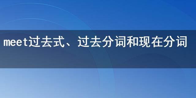 最近小編看到大家都在討論meet過去式、過去分詞和現(xiàn)在分詞相關的事情,對此呢小編也是非常的感應興趣,那么這件事究竟是怎么發(fā)生的呢?具體又是怎么回事呢?下面就是小編搜索到的關于meet過去式、過去分詞和現(xiàn)在分詞事件的相關信息,我們一起來看一下吧!