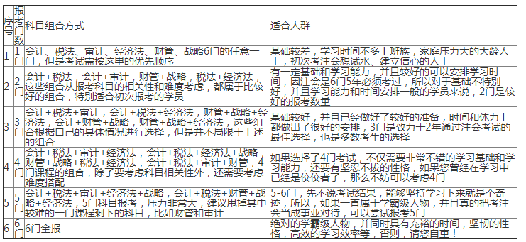 各位考生要根據(jù)自己的實(shí)際情況來(lái)決定注會(huì)科目搭配方案,不要盲目的選擇報(bào)考多科。