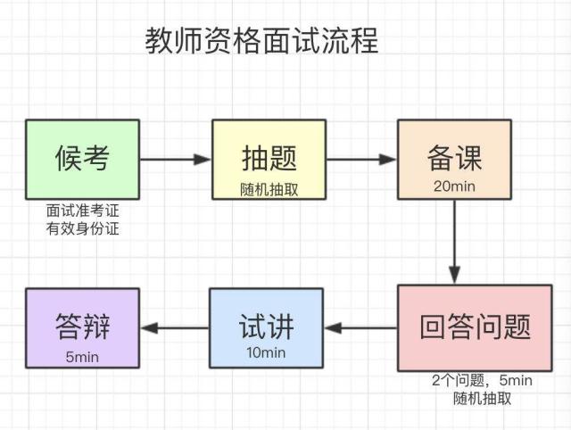 參加2019下半年中小學教師資格筆試考生報名流程:進入中小學教師資格考試網(wǎng)(請自行百度吧,相信通過筆試的都知道,文字不讓貼網(wǎng)址)→登錄系統(tǒng)→面試報名→選擇考區(qū)→選擇類別→選擇科目(專業(yè))→完成網(wǎng)上填報報名信息并確認→等待網(wǎng)上審核或現(xiàn)場資格審核→查詢審核結果→審核通過→考生在線支付考試費→報名成功。